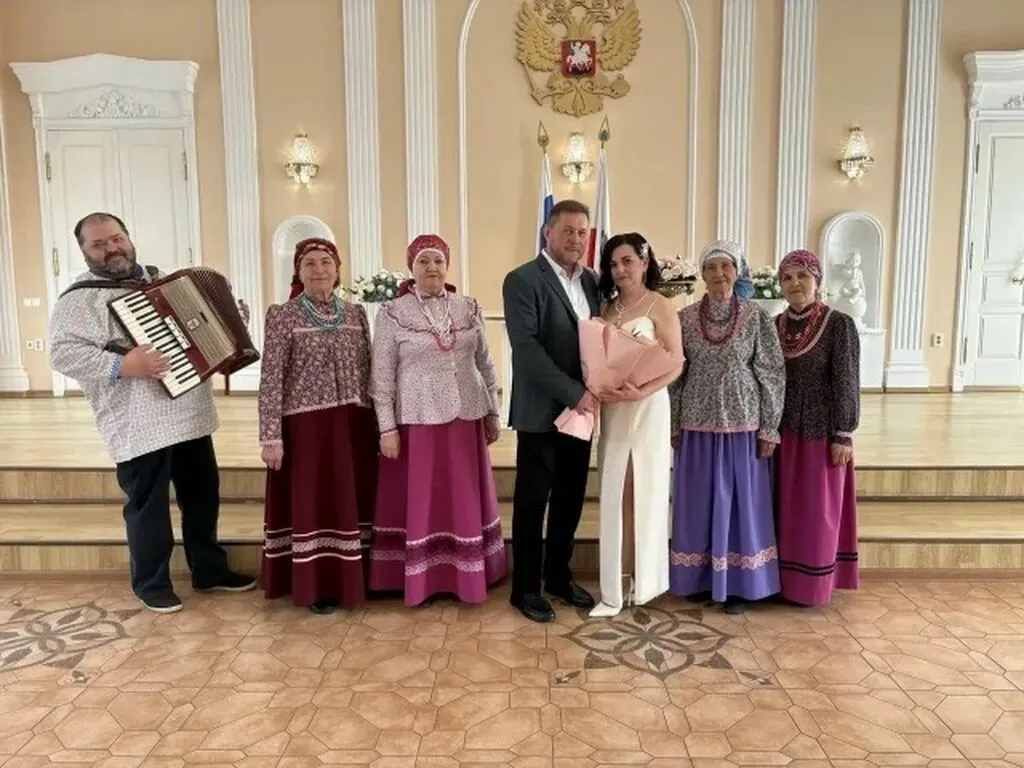 Фольклорный ансамбль «Раздолье» помог сделать церемонии бракосочетания по‑настоящему запоминающимися - для новобрачных звучали традиционные свадебные величальные песни.